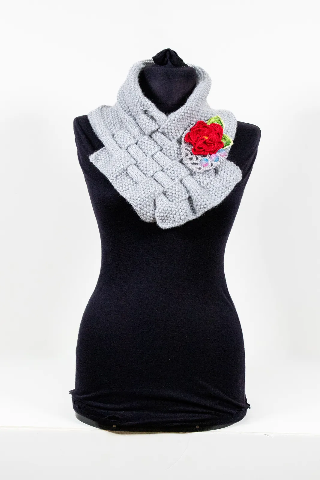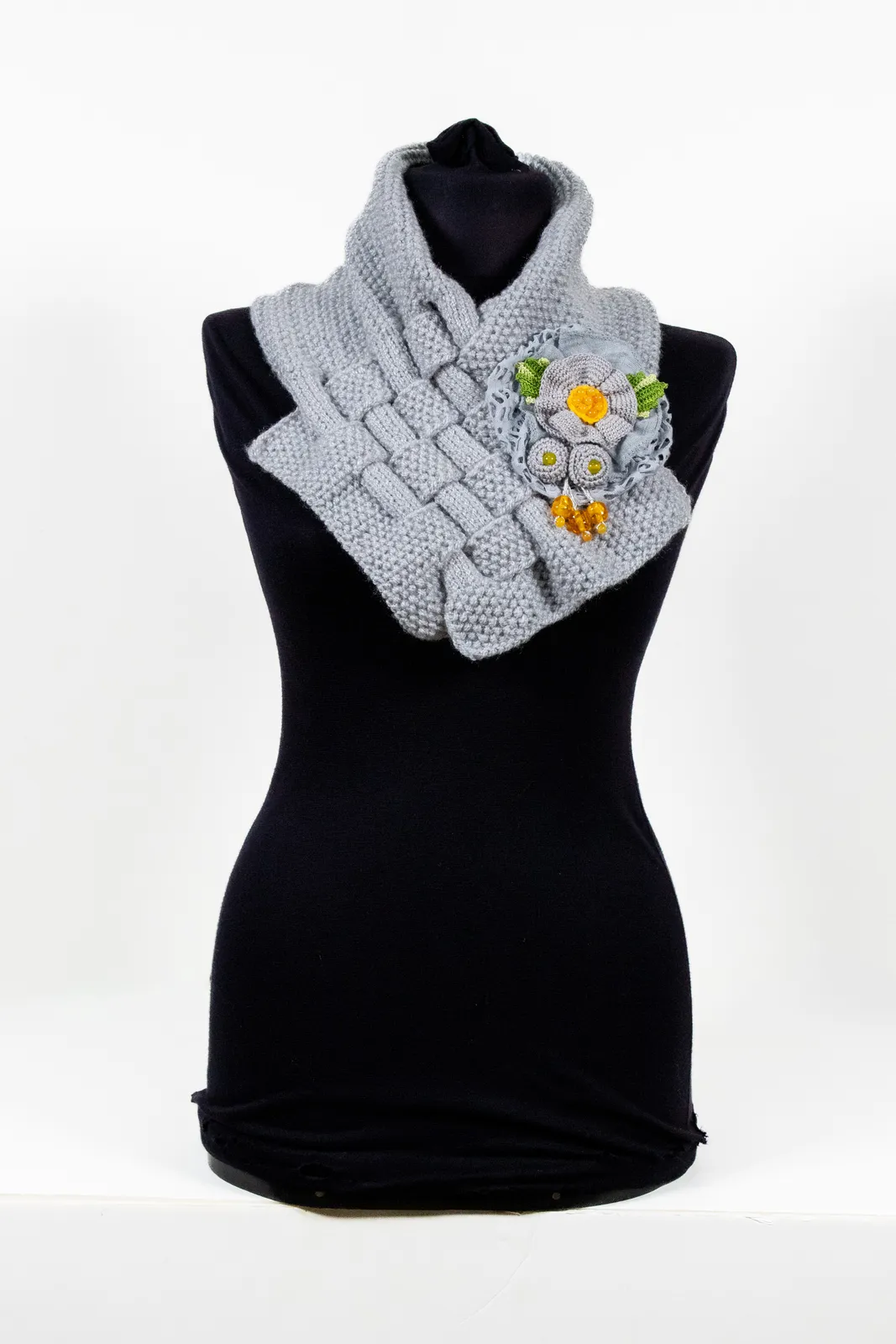 צעיף סרוג בצבע אפור