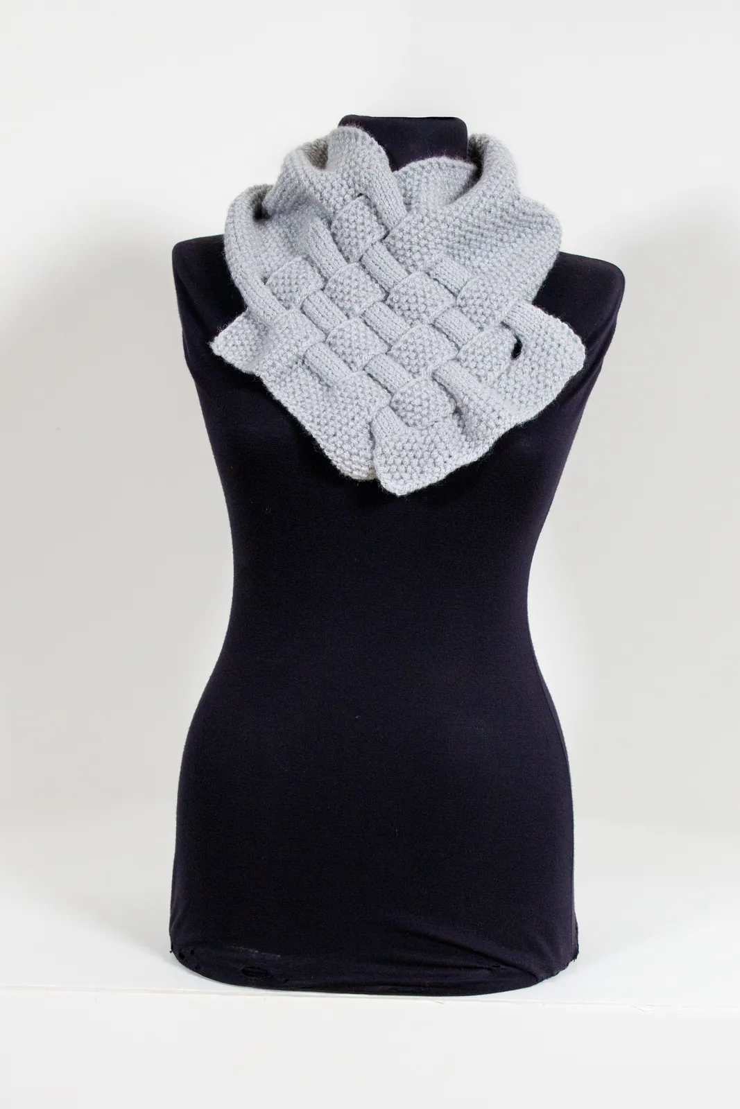 צעיף יוקרתי ומחמם בגוון אפור ניטרלי, עשוי בעבודת יד קפדנית בטכניקת סריגה צפופה. עיצוב הקליעה המרשים מוסיף מראה מודרני ומתוחכם, מתאים לשימוש יומיומי ולמגוון אירועים.
